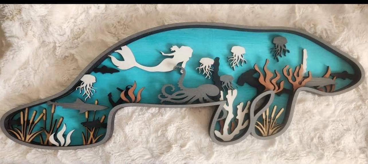 We have a few colors for the manatee: Teal, Purple/Coral, Natural